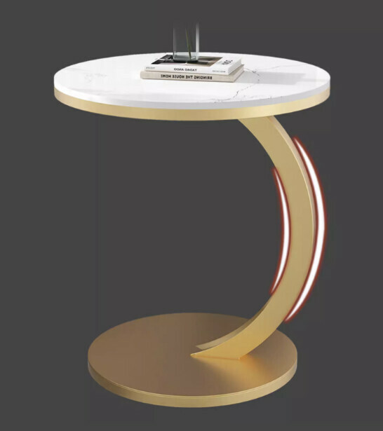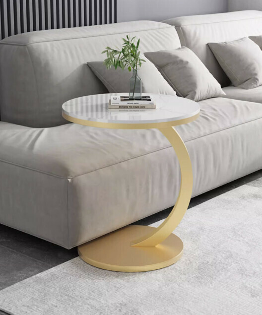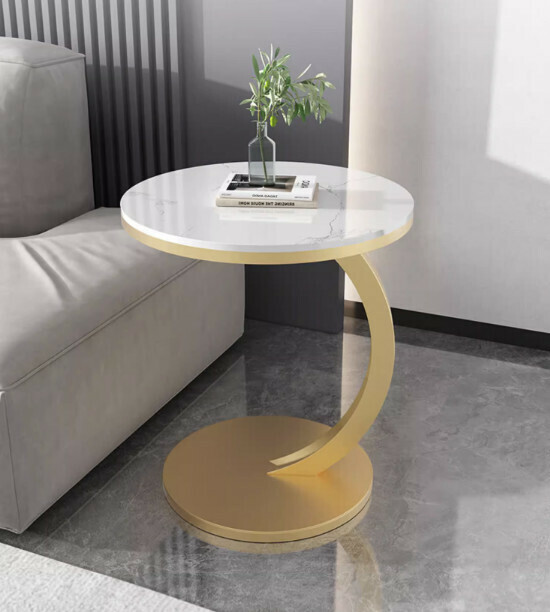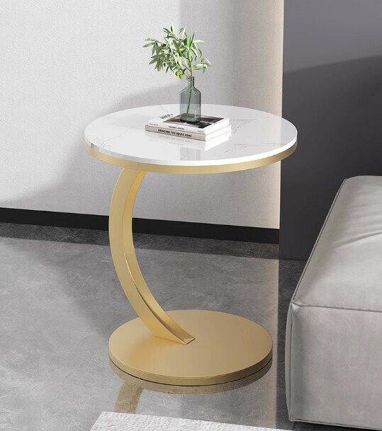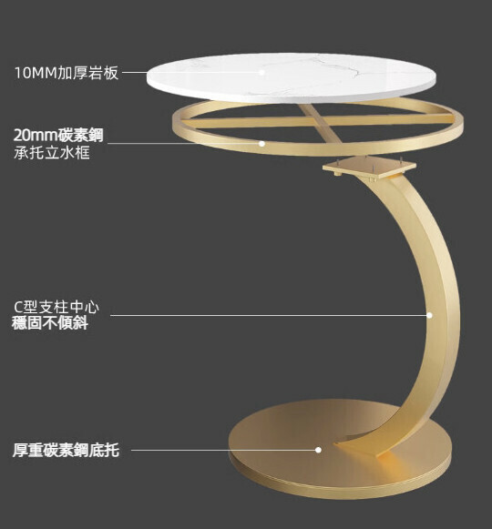 新款岩板小茶几(亮面魚肚白岩+金架)【尺寸:45*45*60cm】