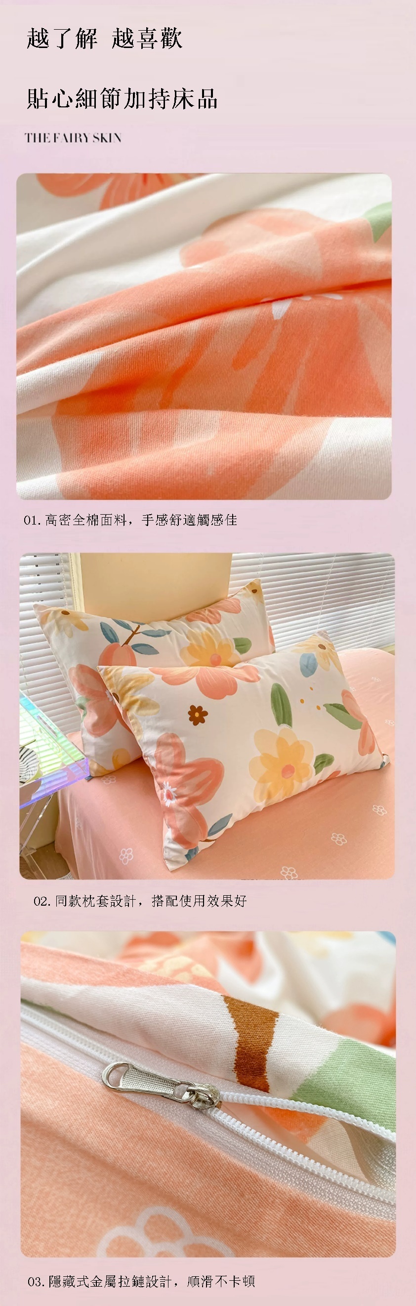 新款小清新純棉床上四件套(粉色花花【A類裸睡級 品質升級加厚保暖】【0.9米床(床單款三件套)適合150*200cm被芯】)