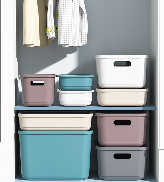 新款純色帶蓋塑料雜物收納箱(芋泥紫高款中號)(尺寸:26*18*16CM)