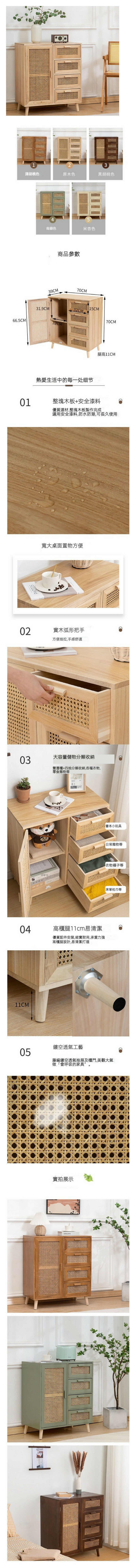 新款實木藤編餐邊櫃收納櫃(青綠色一門四抽【泡桐木】)
