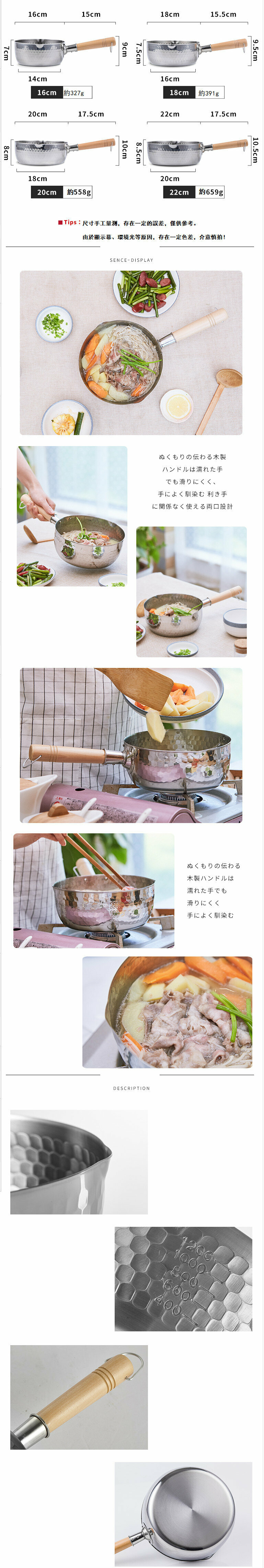 新款不銹鋼雪平鍋(22cm雪平鍋淺色木柄+蓋+網籃)