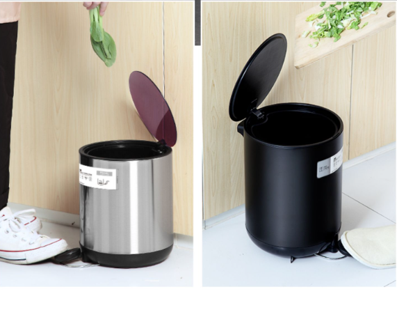 新款不銹鋼垃圾桶(大號5L不銹鋼[腳踏式_月光銀])