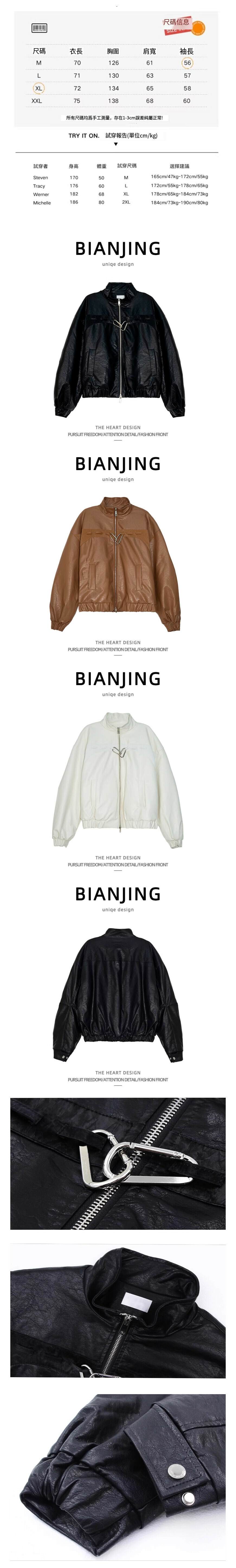 新款立領pu皮衣夾克外套【卡其色】(尺碼:S-3XL碼) (下單後請聯絡客服確認發貨尺碼)
