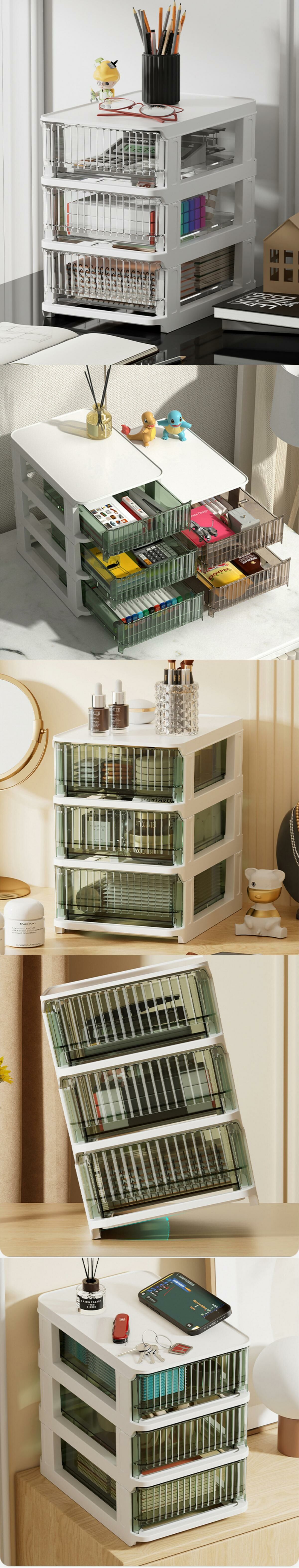 新款收納儲物盒帶抽屜【透綠 (3層)】