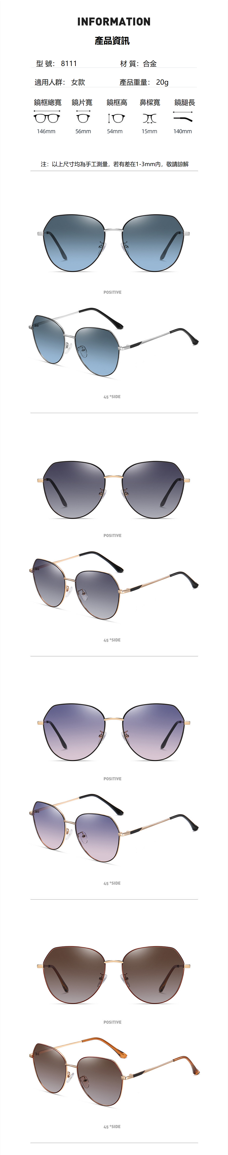 新款街拍女士時尚太陽鏡新潮偏光眼鏡駕駛墨鏡(裸鏡 黑金框+偏光黑灰片)
