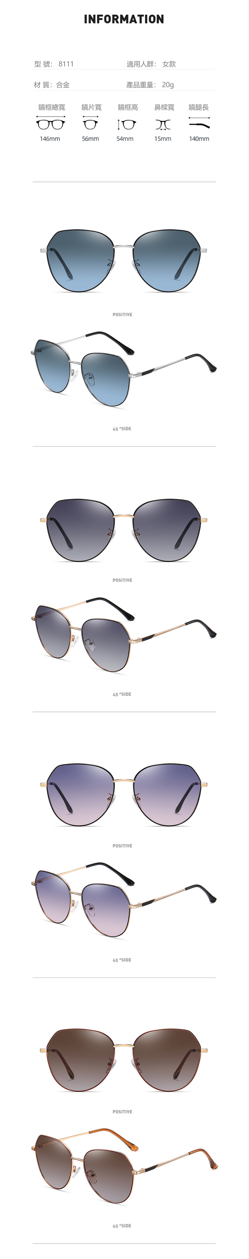 新款街拍女士時尚太陽鏡新潮偏光眼鏡(裸鏡 茶金框+偏光雙茶)