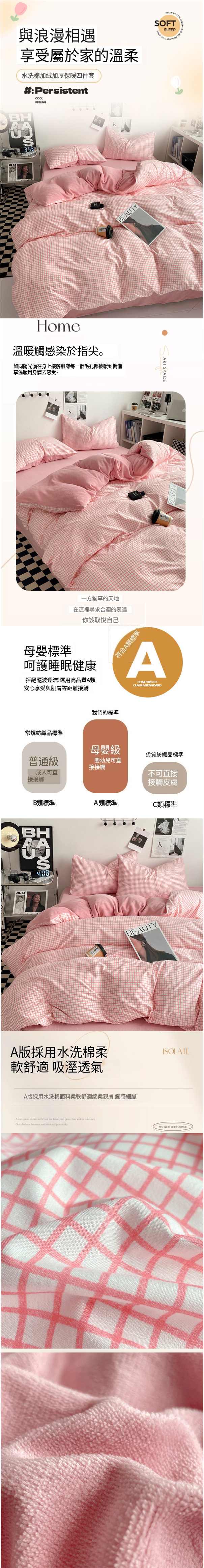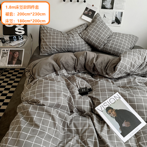 新款條紋牛奶絨床上用品(暖絨-中灰格)(1.8m床笠款四件套【被套:200cm*230cm,床笠:180cm*200cm】)
