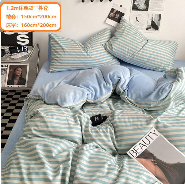 新款條紋牛奶絨床上用品(暖絨-水蘭條)(1.2m床單款三件套【被套:150cm*200cm,床單:160cm*200cm】)