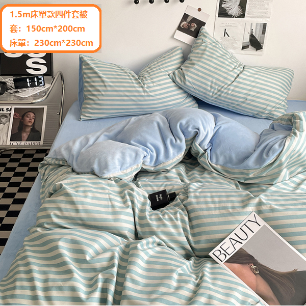 新款條紋牛奶絨床上用品(暖絨-水蘭條)(1.5m床單款四件套【被套:150cm*200cm,床單:230cm*230cm】)