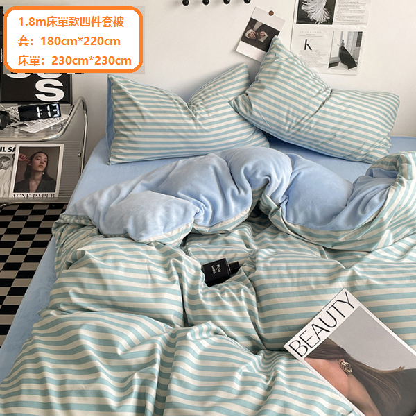 新款條紋牛奶絨床上用品(暖絨-水蘭條)(1.8m床單款四件套【被套:180cm*220cm,床單:230cm*230cm】)