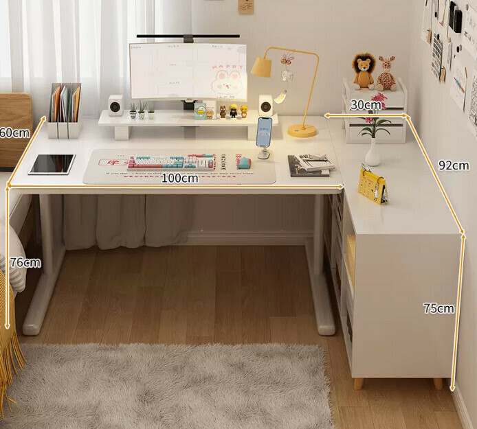 新款學習辦公桌子L型書架(【兩件套】白色六格櫃+白色桌)