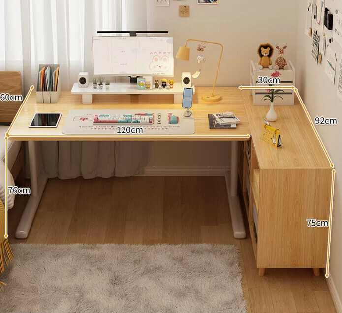 新款學習辦公桌子L型書架(【兩件套】木色六格櫃+木色桌)