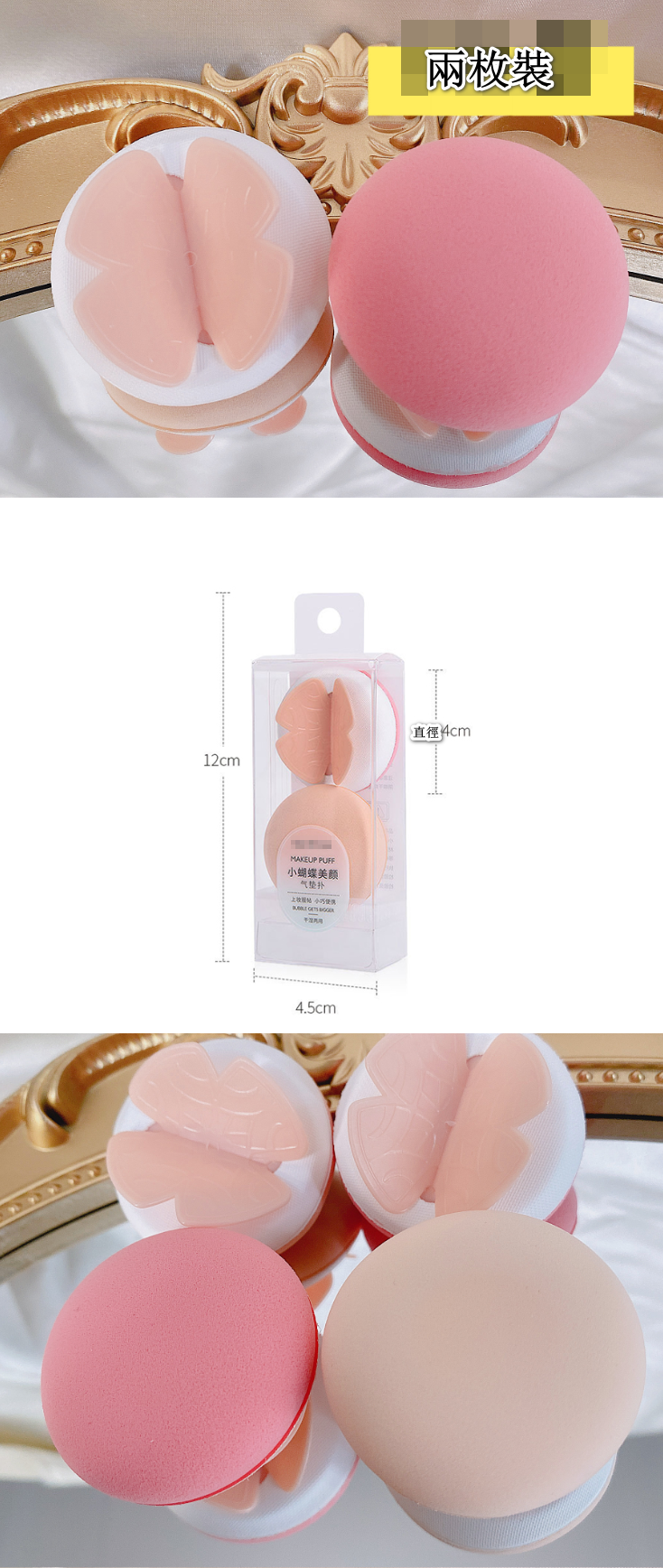 新款【1盒2個】蝴蝶粉撲乾濕兩用 (膚色+粉色 各1個 )