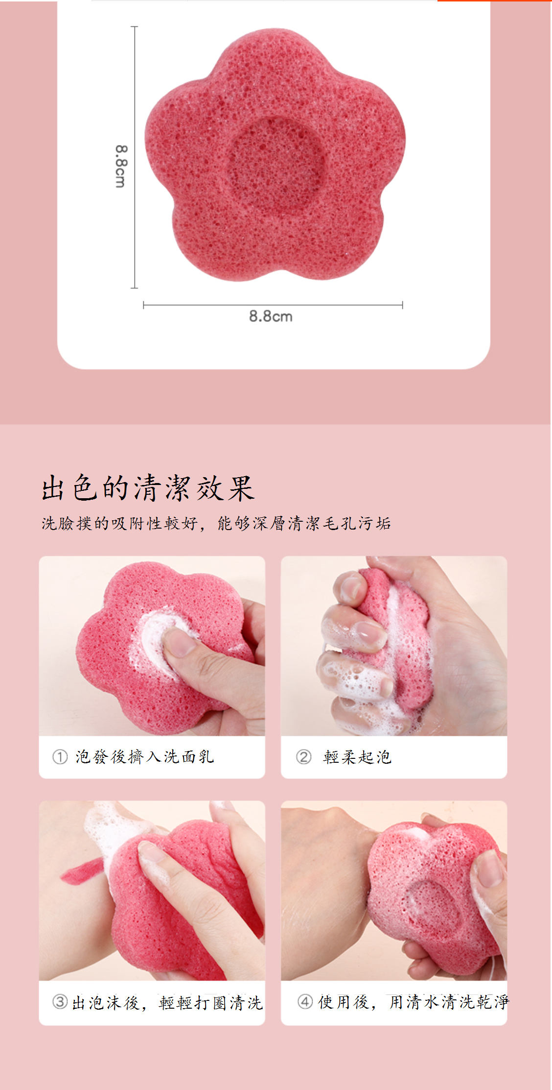 新款【1個裝】小花花天然魔芋洗臉撲(配粉掛鉤1個))