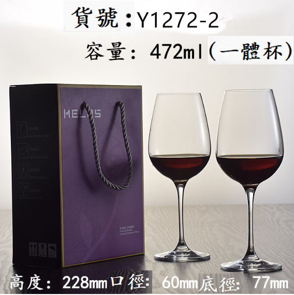 新款【1對杯禮盒裝】水晶玻璃紅酒杯(貨號:Y1272-2)