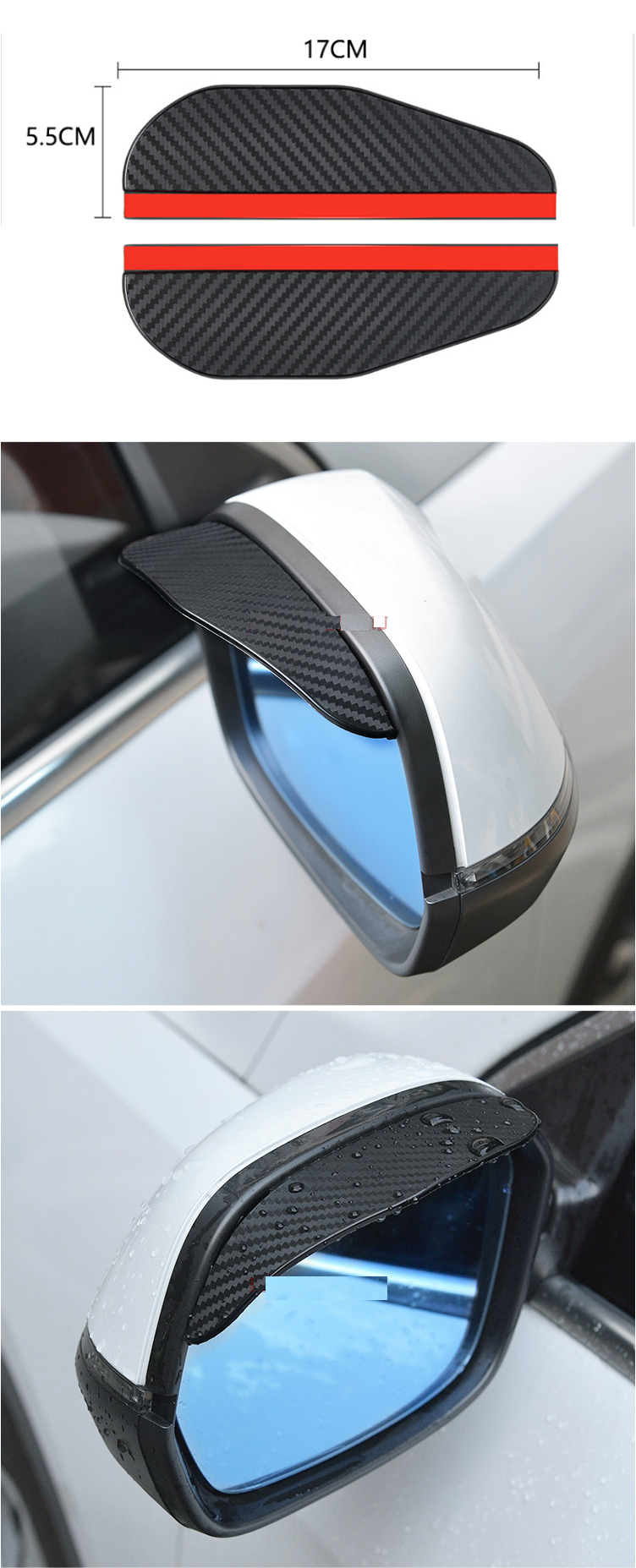 新款【1對裝】汽車後視鏡擋雨板(黑色笑臉)