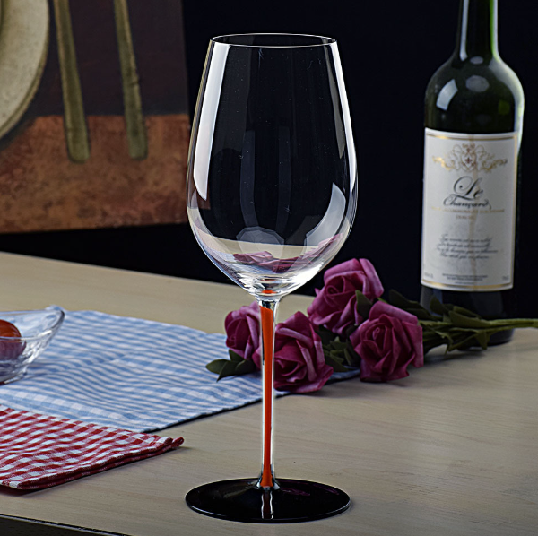 新款【1個】水晶彩色紅酒杯(容量/貨號:900ml/橙桿黑底)