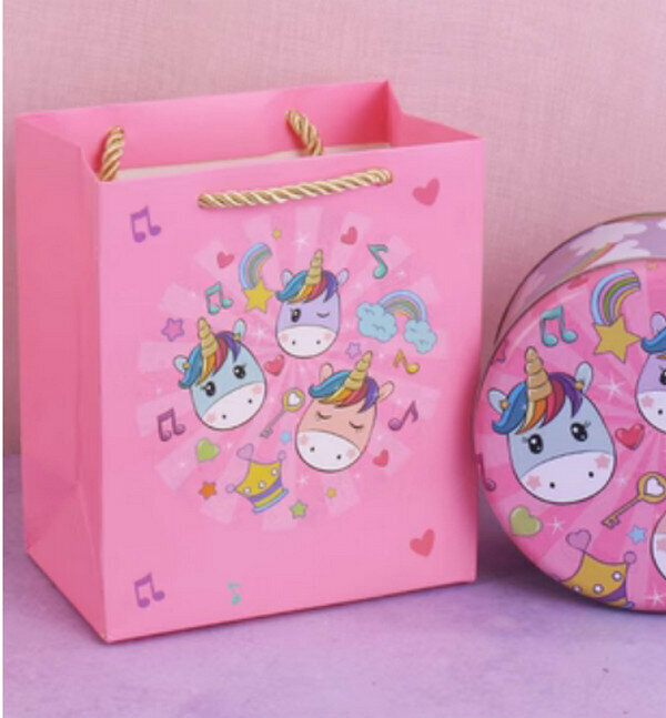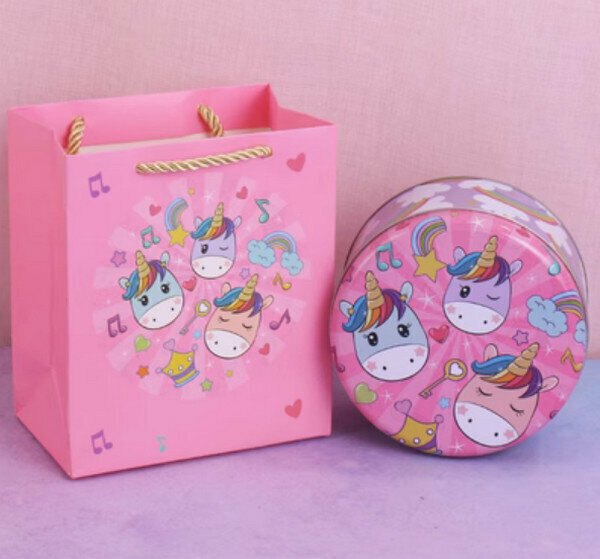 新款【10個】可愛圓形精緻盒子-粉色小馬-小號套裝<小號盒子13.5*7cm【5.5寸】+手提袋>