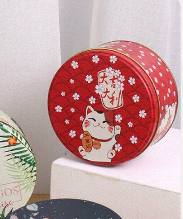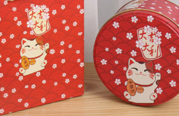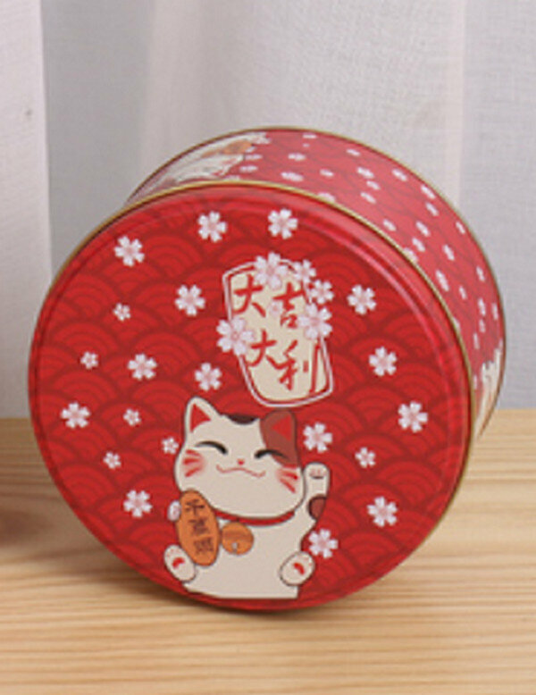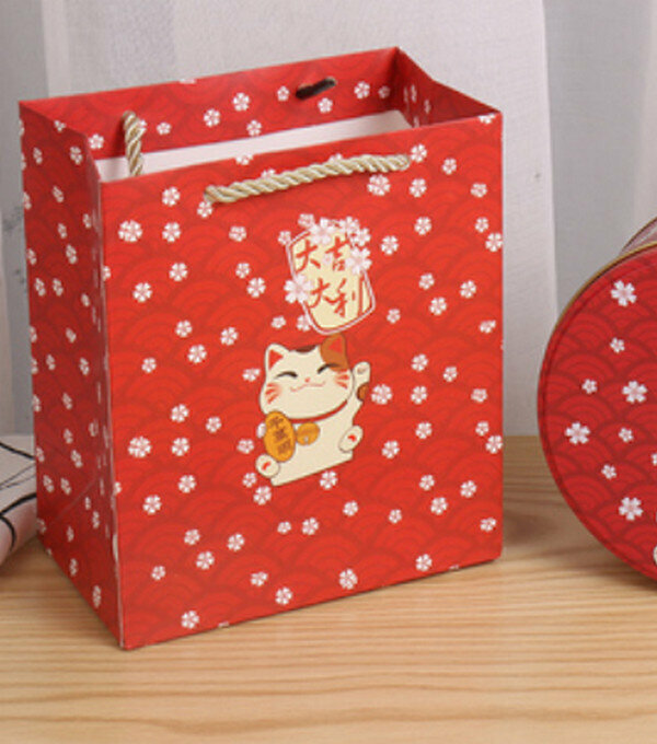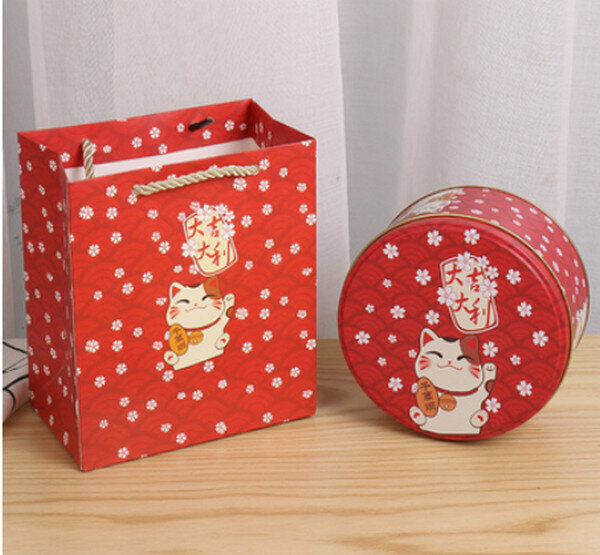 新款【10個】可愛圓形精緻盒子-招財貓-大號套裝<大號盒17.5*7.5cm【6.8寸】子+手提袋>
