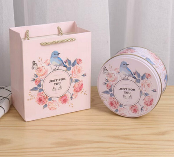 新款【10個】可愛圓形精緻盒子-喜鵲-小號套裝<小號盒子13.5*7cm【5.5寸】+手提袋>