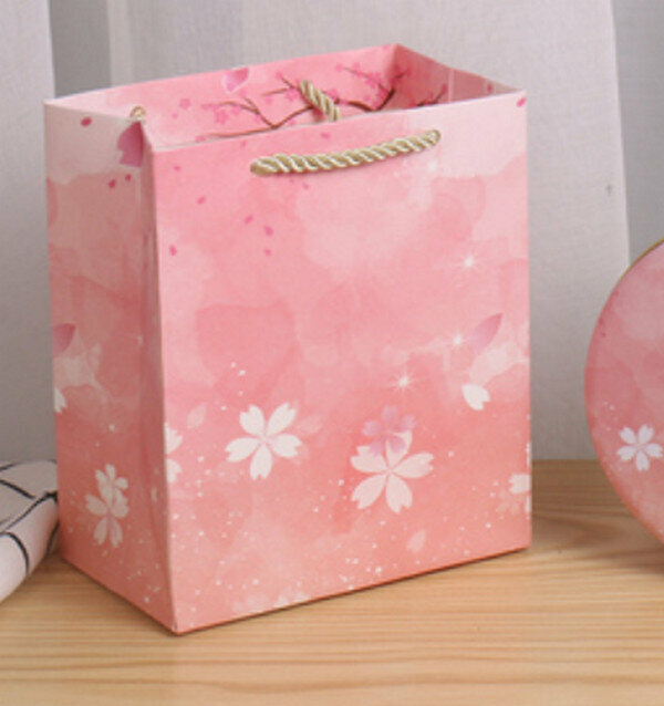 新款【10個】可愛圓形精緻盒子-櫻花-大號套裝<大號盒17.5*7.5cm【6.8寸】子+手提袋>