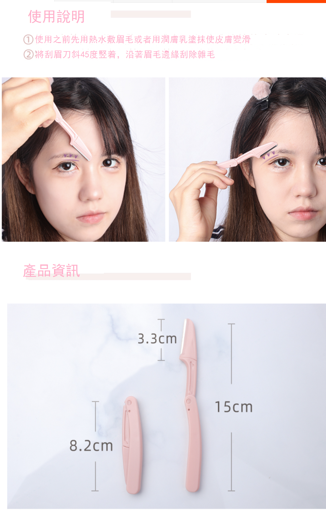 新款【3支裝/盒】可折疊式修眉刀(規格:三色刮眉刀+斜口眉夾【送3支睫毛刷】)