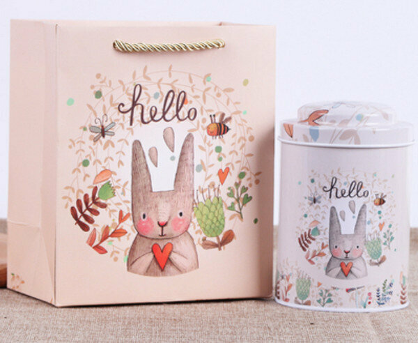 新款【6個】馬口鐵罐儲錢罐儲存罐-歡樂兔罐小號套裝【小號盒子8.8*13cm+手提袋】