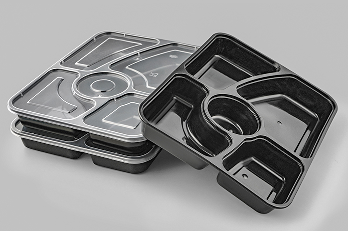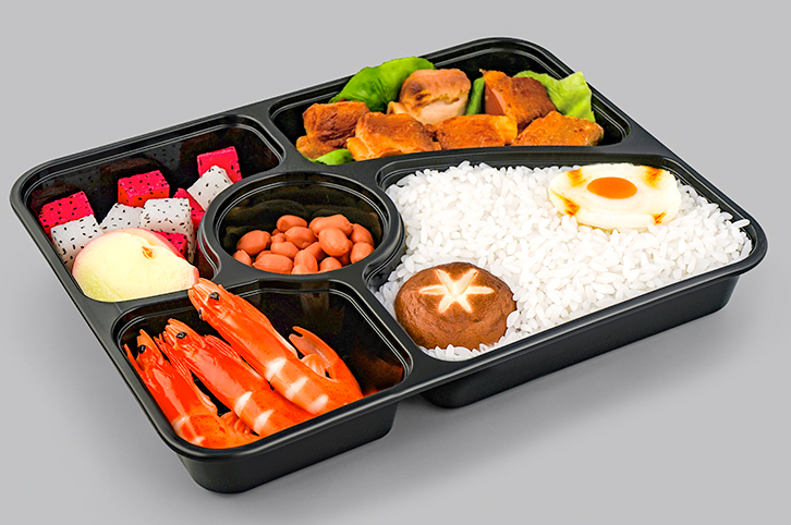 新款(90套裝)一次性方形外賣打包餐盒(白底黃蓋-HZ六格)(容量約:1580ml)(尺寸:25.5cm*22cm*4.9cm)