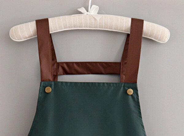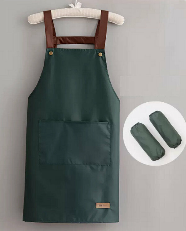 新款釘扣背帶防水純墨綠圍裙+套袖