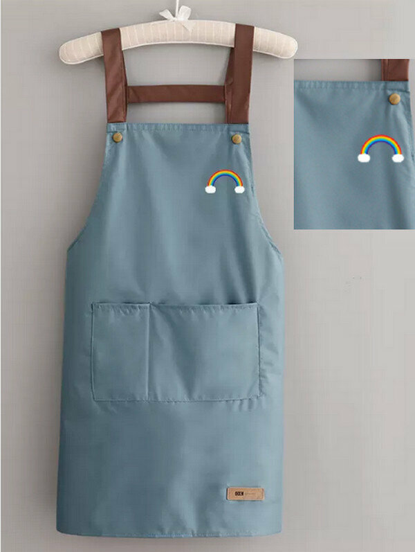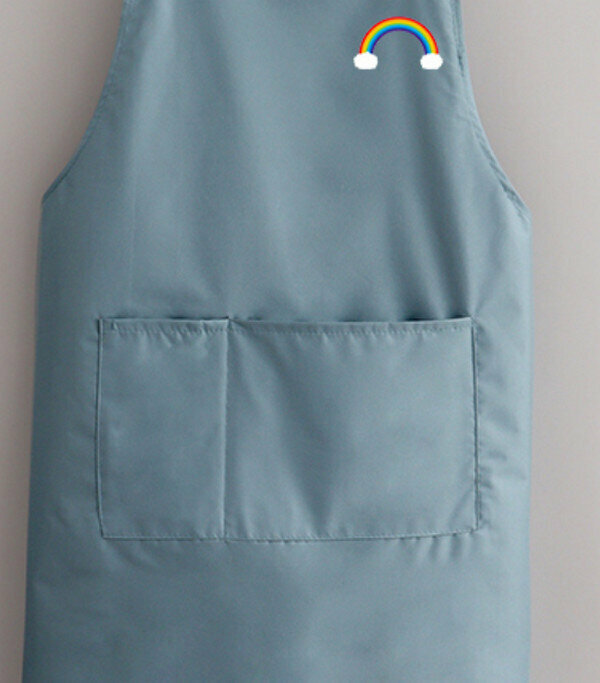 新款釘扣背帶防水純煙藍圍裙-彩虹