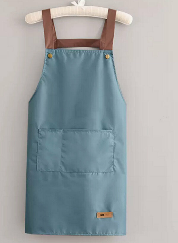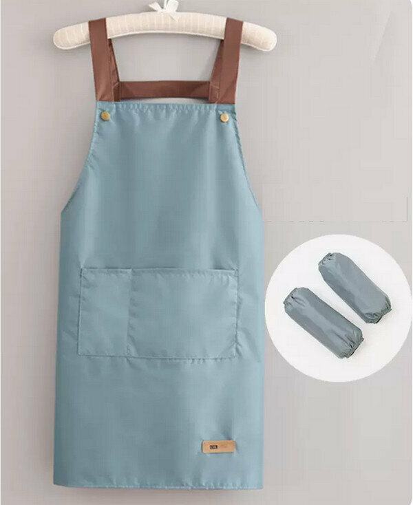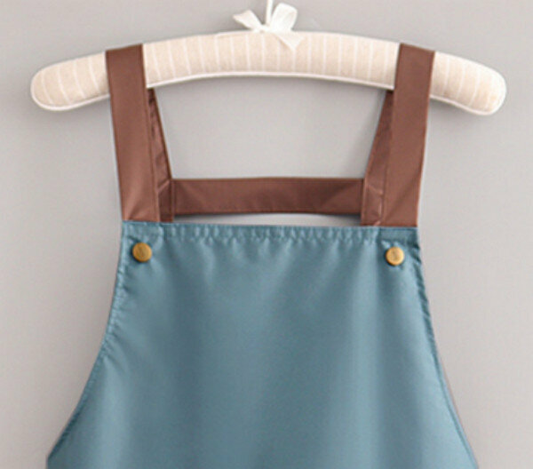 新款釘扣背帶防水純煙藍圍裙+套袖