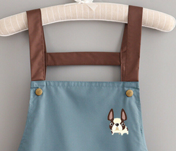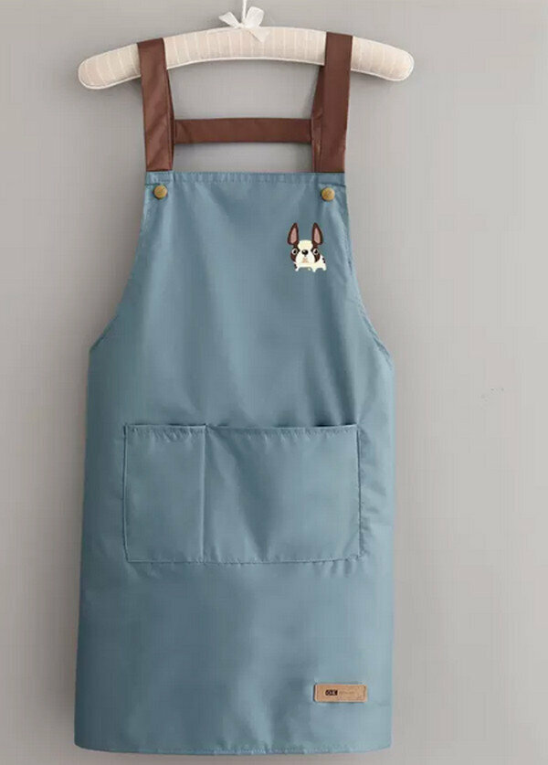 新款釘扣背帶防水純煙藍時尚圍裙-法鬥