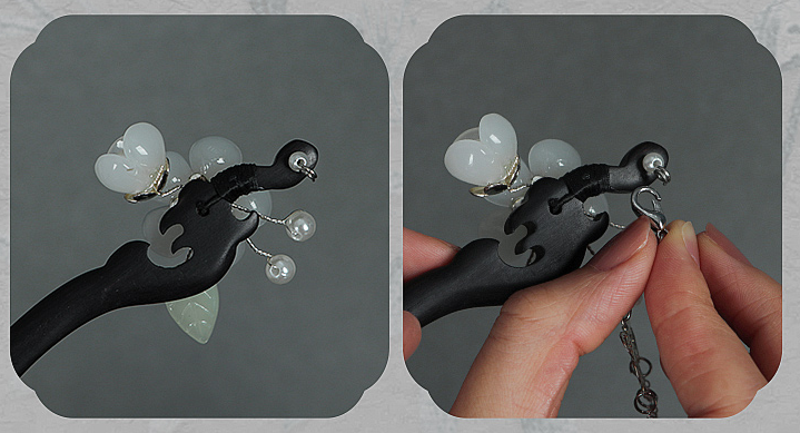 新款黑檀木古風流蘇步搖簪子(青靈)(尺寸:簪長18cm,流蘇長13cm)