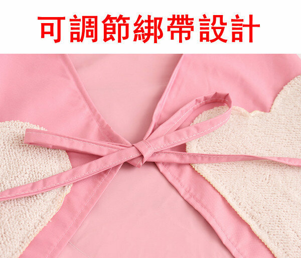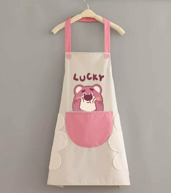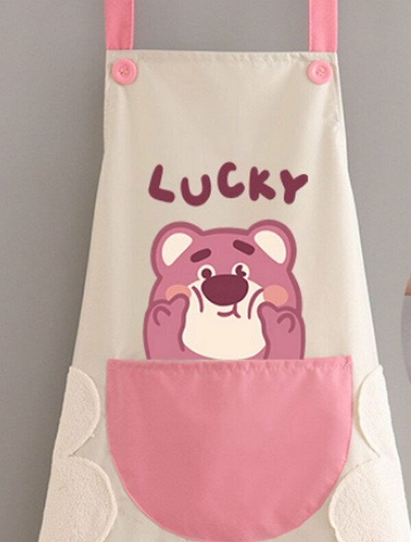 新款小清新可愛圍裙-擦手防水掛脖草莓熊灰配粉+套袖