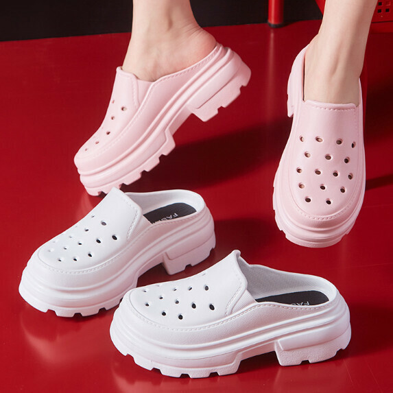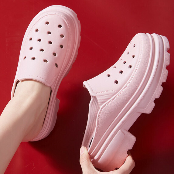 新款半拖洞洞厚底涼拖鞋女(粉色【35_40碼】(下單後聯繫客服確認發貨尺碼)