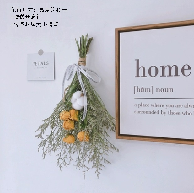 新款掛墻裝飾倒掛幹花花束(小黃玫情人草)