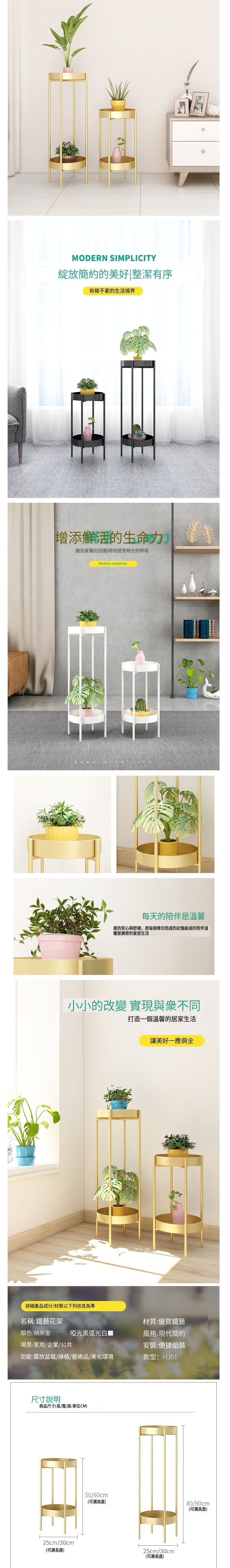 新款鐵藝落地式花架陽臺裝潢花架置物架(金色,80*25cm)
