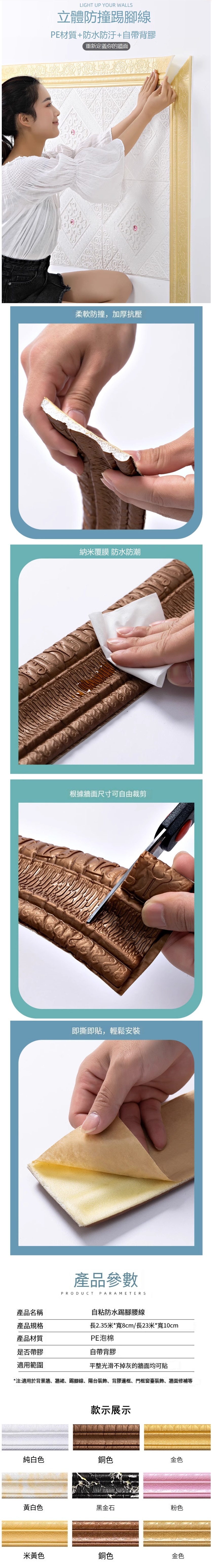 新款【長2.3米*寬8cm*厚8mm】自粘門框包邊貼 腰線踢腳線 裝飾封邊牆角線貼 天花板邊條(粉色)