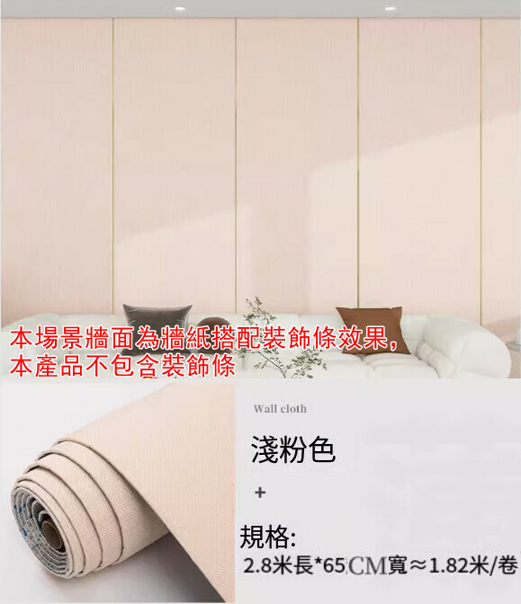 新款(長2.8米*寬65CM/ 1卷裝)亞麻牆布 自粘牆紙 軟包牆板 裝飾牆貼 【淺粉色 無包邊】