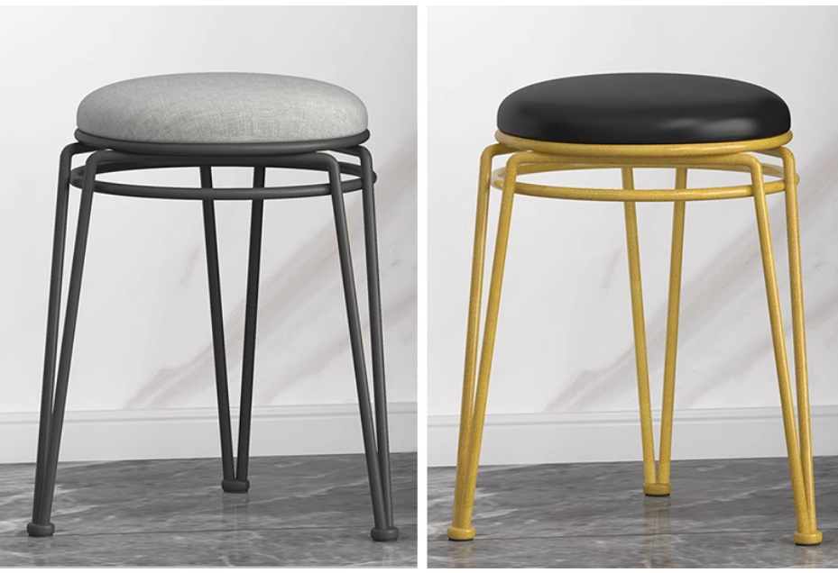 新款家用輕奢鋼筋圓凳(PU白色/噴金腿)(尺寸:45*29CM)