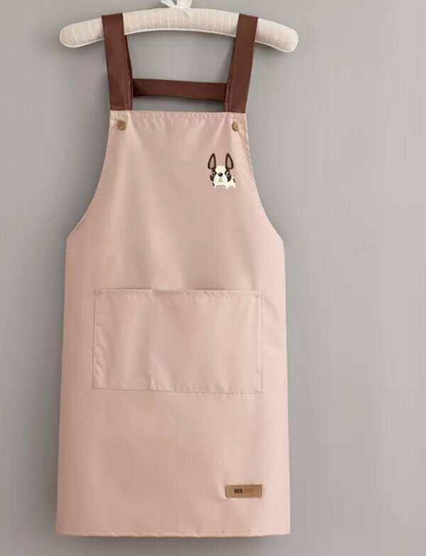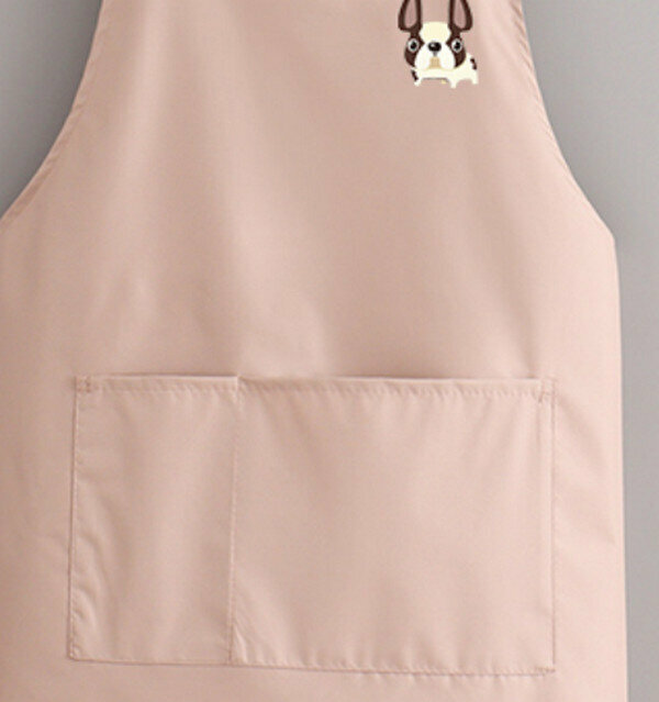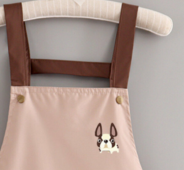 新款釘扣背帶防水純煙粉時尚圍裙-法鬥