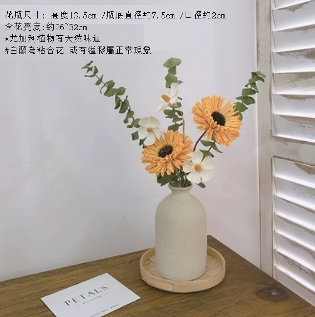 新款永生花客廳擺設真花風幹(粗陶花瓶 馬蹄蓮尤加利)
