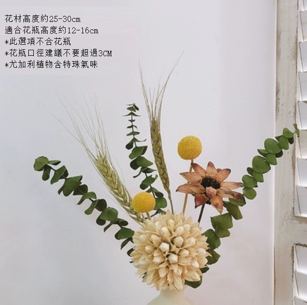 新款永生花客廳擺設真花風幹(不含粗陶花瓶 白玉蘭球尤加利)