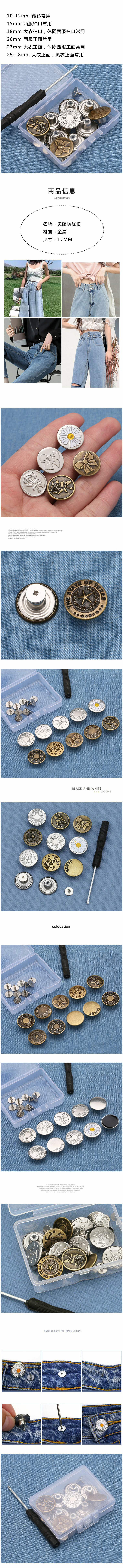 新款【10顆裝】金屬紐扣衣服配件 牛仔褲扣(17mm 配安裝工具)(10號款)