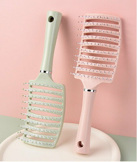 新款【2把裝】家用按摩背頭大彎排骨梳(粉+綠)【尺寸:24*7cm】
