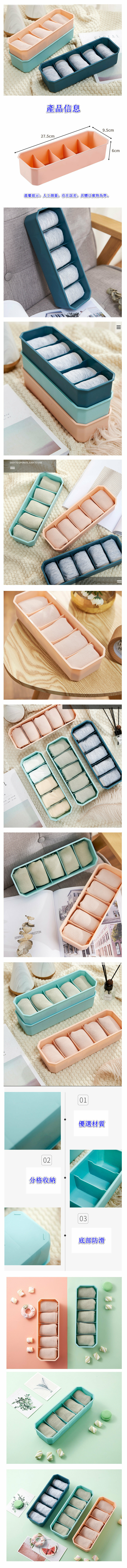 新款(3個裝)分格收納盒【珊瑚粉】【規格:27.5*9.5*6cm】