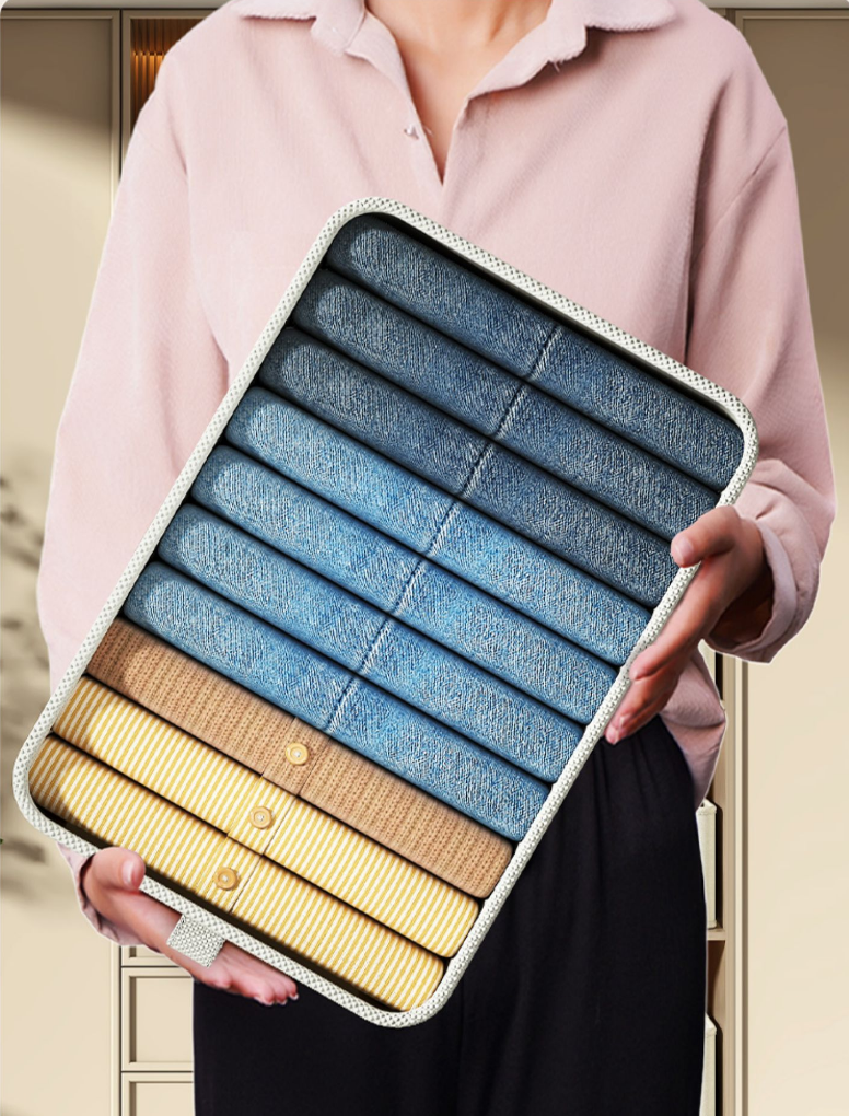 新款(4個裝)布藝衣物收納箱(優雅灰)(尺寸:巨大號-47*30*25CM)
