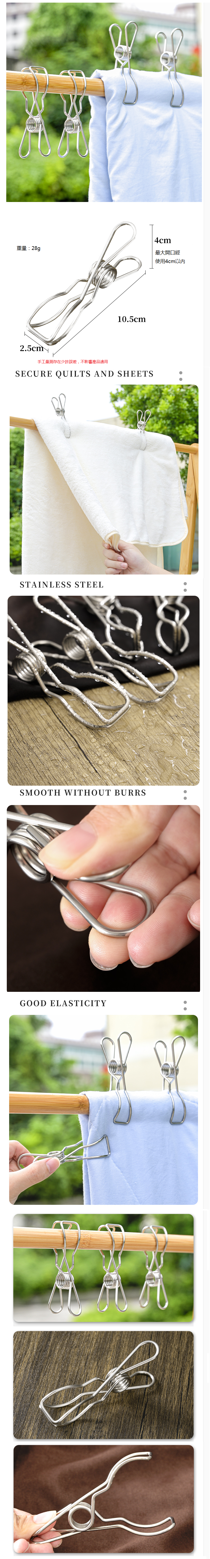 新款【4只裝】不銹鋼大號多功能衣服夾(2.5*10.5cm)