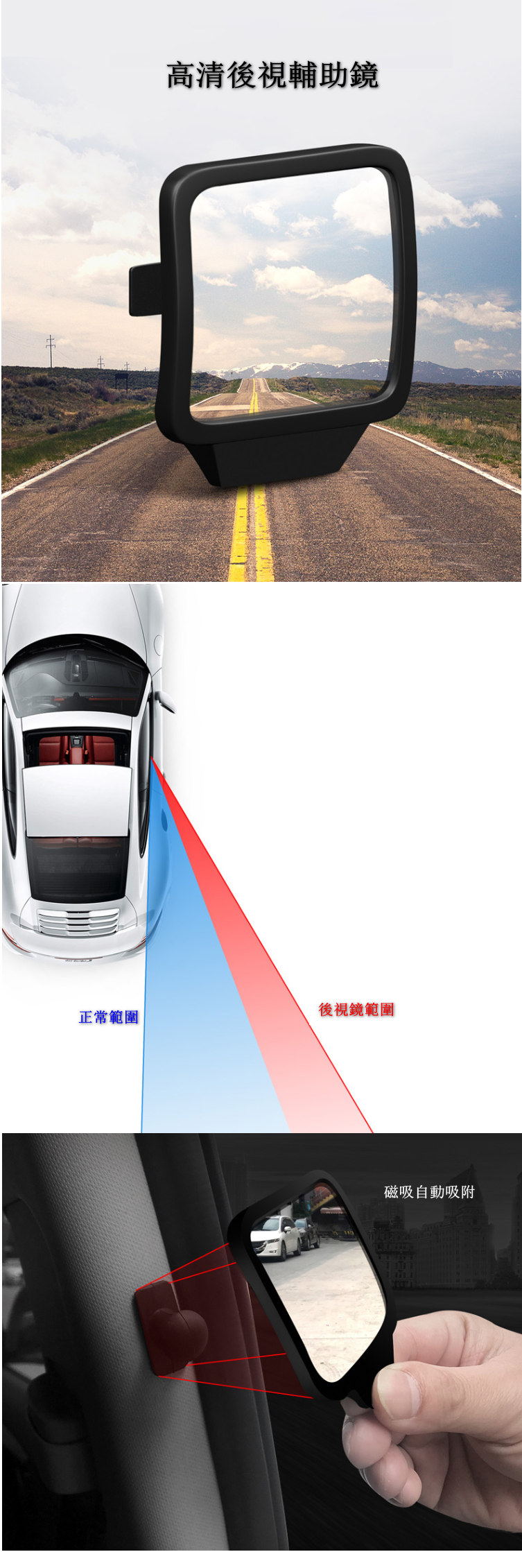 新款【一對裝】汽車二排後視鏡(方形 黑色)