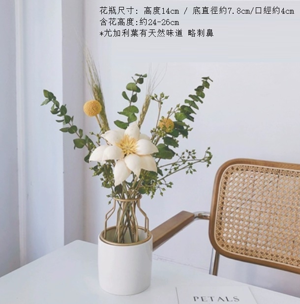 新款真花風幹天然客廳擺設(陶瓷鐵藝瓶 杏仁奶油小米葉)